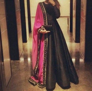 black long suit with pink dupatta