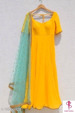 Georgette goen with floral dupatta