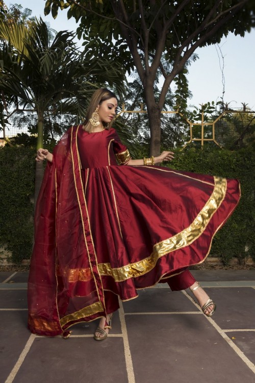 flared anarkali pant with dupatta set
