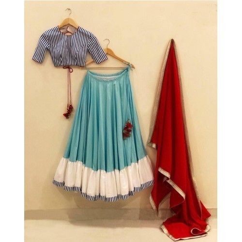 striped blouse with linen lehenga set